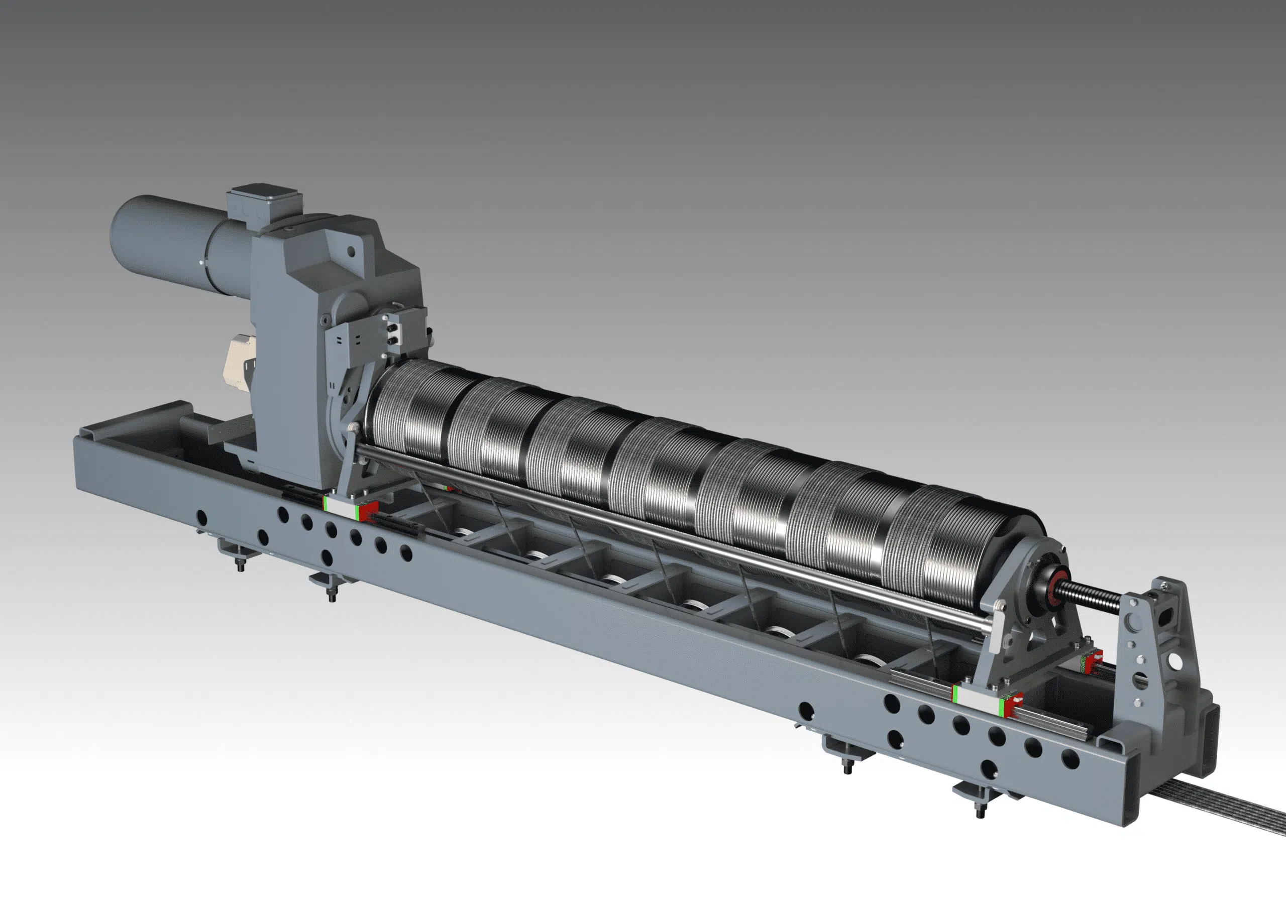 · High-end general purpose fly bar hoist with moving drum and headblocks assembly.